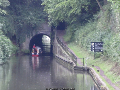 Canal tunnel under Shrewley village, unusual in having one tunnel for the boat, and a separate, higher tunnel for the horse!